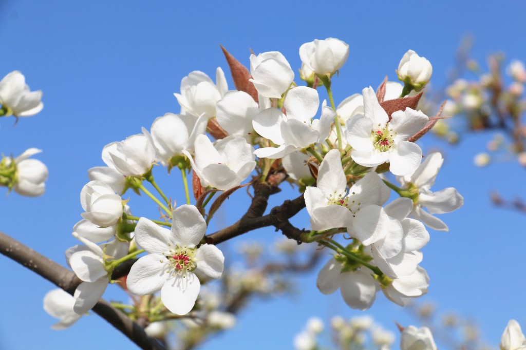 春季花期,清丰大屯乡雷家村万相红梨基地,千树万树梨花同时绽放,白色花瓣层层叠叠,从村口延伸至田间,形成 “漫山皆白、如云似雪” 的壮阔场景,远观如白色海洋,近看则花瓣带着细腻纹路,兼具大气与精致。